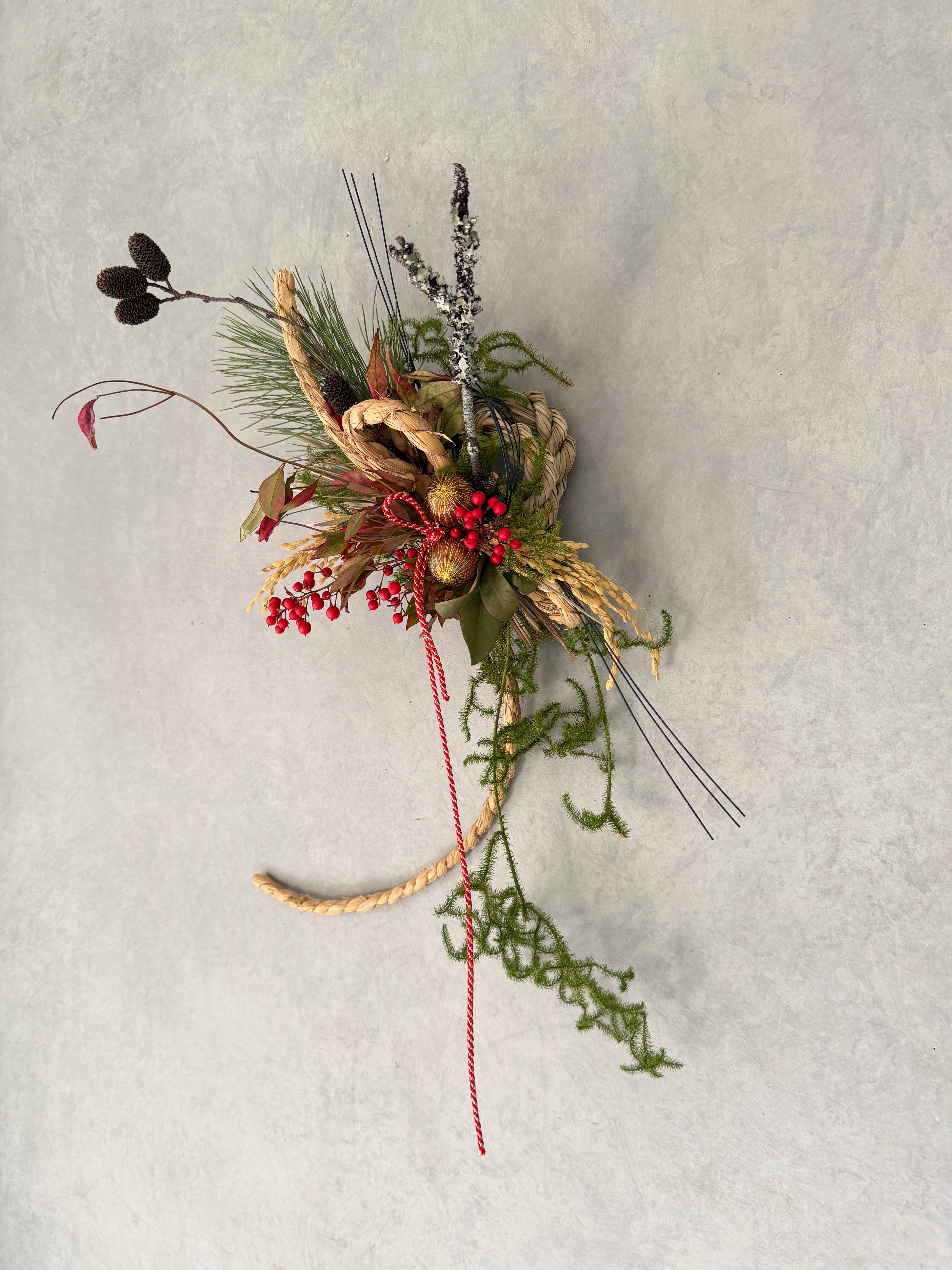 新年を迎えるのにぴったりのしめ縄飾りをご用意しました。
